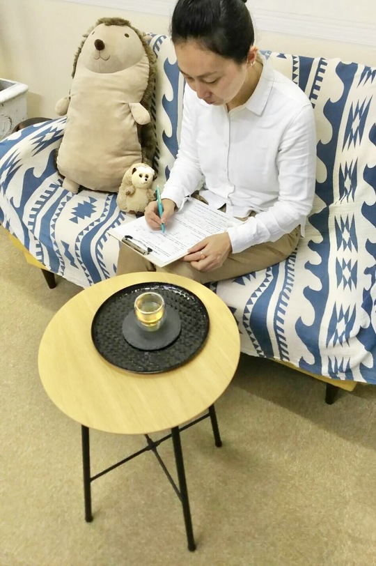 初めての方には、受付でバインダーをお渡しします。お手数ですが、症状やお悩みなどについての受付票へのご記入をお願いいたします。